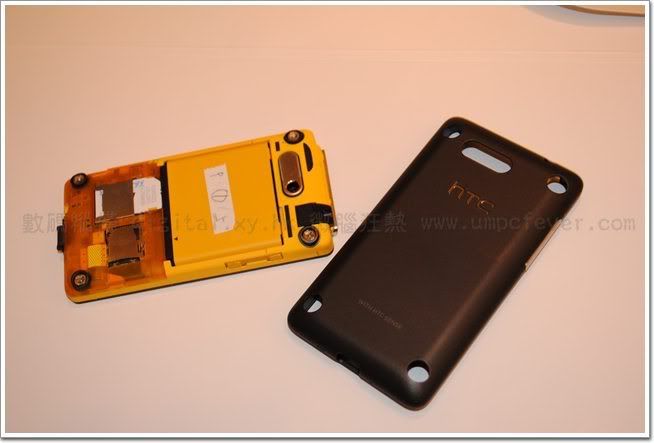 今日宣佈推出HTC HD mini,這款結合了HTC Sense 消費者使用經驗的Windows Phone不僅擁有時尚外型和精緻工藝,同時也容易操作、使用,而HTC HD mini正是為了那些喜愛HD2強大功能和使用界面,它強烈的設計理念甚至延伸至內部構造。當手機電池蓋打開時,內部亮黃色的結構將為使用者帶來意外的驚 喜。