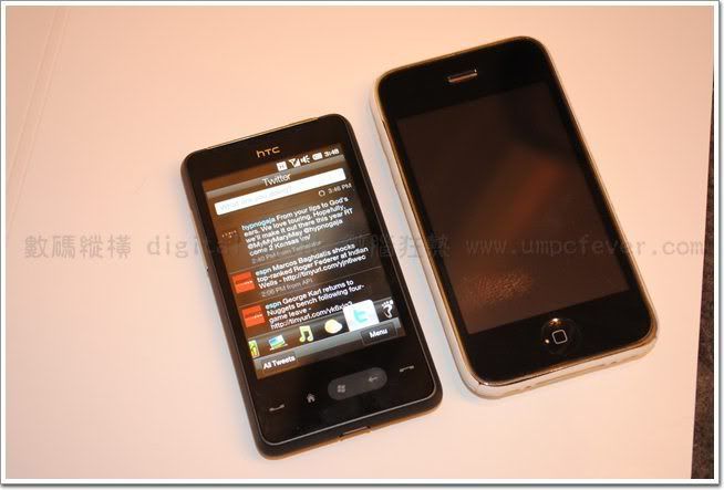 跟HTC HD2一樣設有HTC Sense 介面,還加裝了Windows版本的Twitter應用程式 — HTC Peep,還能夠隨時隨地提供WiFi供電腦或其他裝置使用。