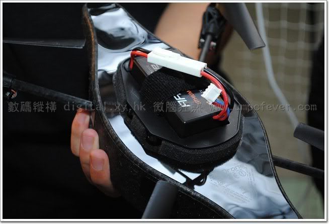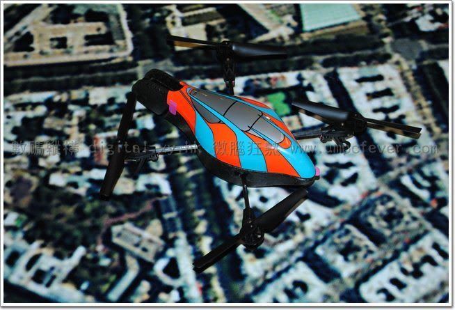 至於室內飛行,特別設計的外殼及由白、灰、黑組成的座艙將螺旋槳包圍,以抵抗外來的阻礙。將跟機身顏色相似的貼紙貼在拱形的位置上,便可進行無人駕駛的戰 役。