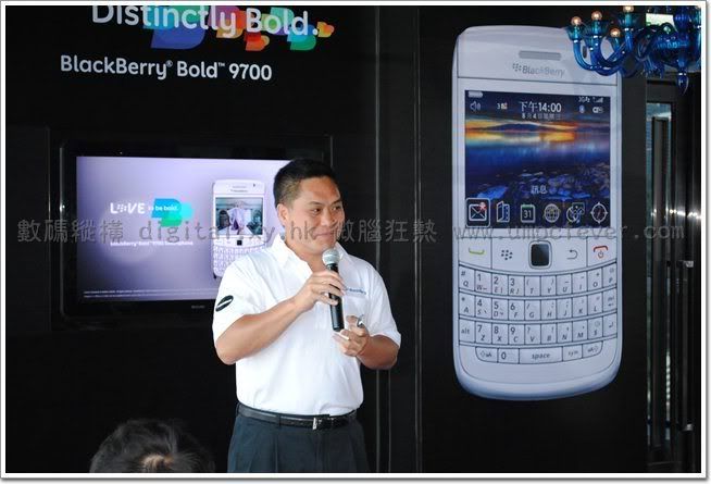 RIM今日在香港發佈珍珠白BlackBerry Bold 9700智能手機。圖中為Research In