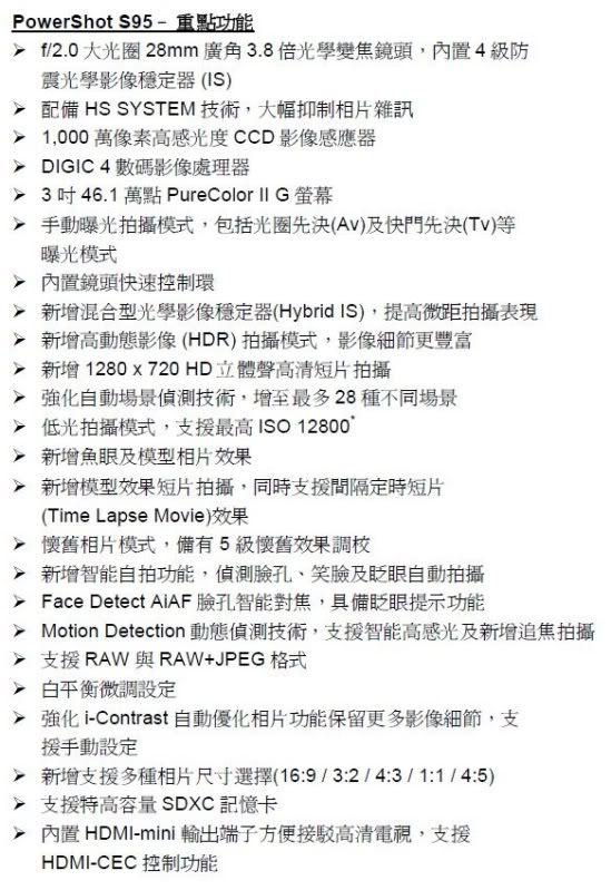 全新佳能 PowerShot S95 數碼輕便相機將於2010 年8 月21 日正式發售,建議