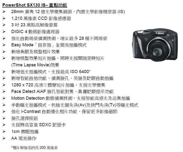 PowerShot SX130 IS數碼輕便相機將於2010年8月21日起正式發售,建