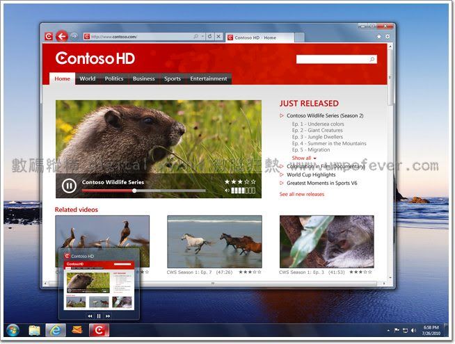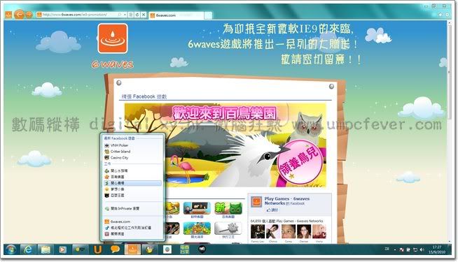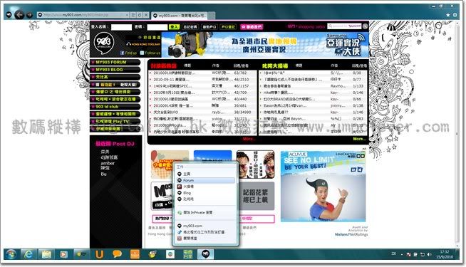 現時TVB 網站為IE9 瀏覽器,增加多個快捷網頁,令用戶更快捷到網站