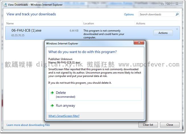 檔案下載方面,IE9 瀏覽器作出改善,下載檔案時中斷連線亦可以繼續下載檔案。