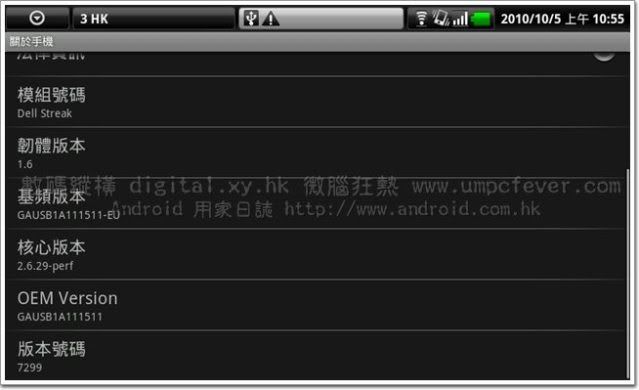 測試時Dell Streak 智能手機是為Android 1.6版本,近日Dell 公司對香港版作出Android 系統更新2.1版本,Dell 公司承諾短期內更新至Android 2.2 版本,相信會令Dell Streak 智能手機添加更多趣味更多購買欲。