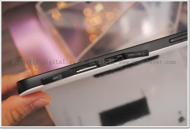 內置電池設計的Galaxy Tab,電話卡及SD 讀卡器機身右下方位置。