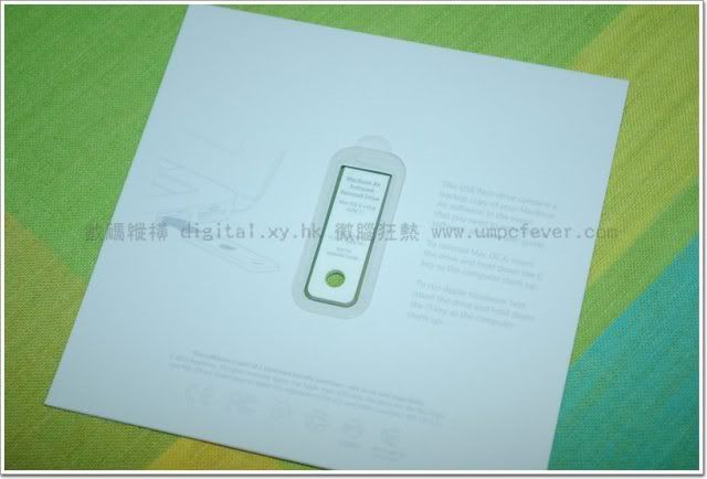 Macbook Air 没有內置光碟機,但內附一個USB Disk,給用家作系統重裝及安裝iLife 11 軟件。