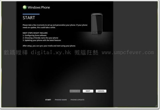 然後用USB接上HTC Mozart,首次有簡單設定。