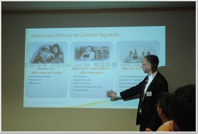 新一代雲端生產力方案Office 365快將推出。它除了為不同規模的企業提供Microsoft 最新及最可靠的雲端通訊及協作方案,亦加入了最新桌面套裝版本的Office 2010。Office 365是經常保持更新的雲端服務,透過雲端為數以百萬計機構提供屢獲殊榮的Microsoft 商用生產力服務,令員工無論身處何地也可以輕易地透過不同類型的裝置保持聯繫及共同工作,與機構內部和外部工作人員進行既簡易又安全的協作。