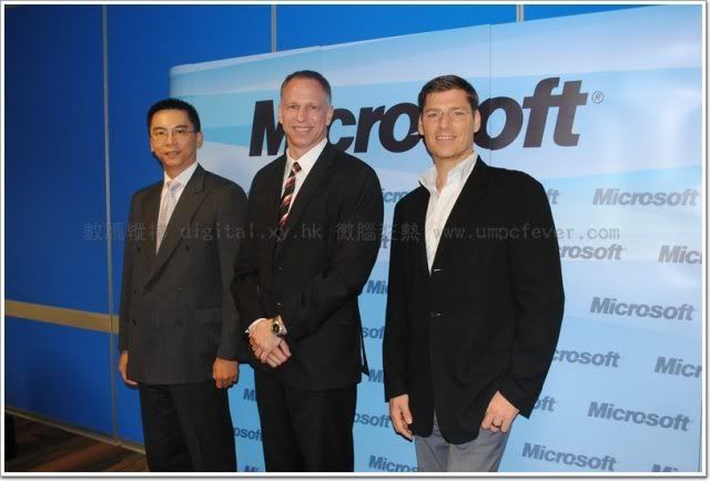 (左起) 金門建築有限公司資訊管理服務總監朱凱威、Microsoft Hong Kong Information Worker業務主管David Hooper及Greg Crandall, Country Manager, Asia City Media Group