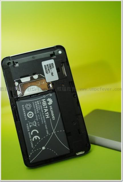打開機背後殼,1400mAh電池筆者測試時,用iPad不停覧瀏網頁,電池可以用五小時,如果以一個工作天,在上班前午餐後使用Huawei E583C上網,下班後回到家還仍然有電。