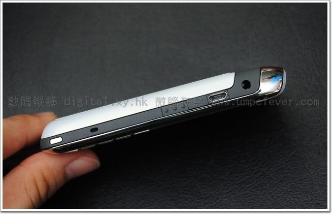 機身右邊設有拍攝鍵、音量按鍵、3.5mm 耳機接口