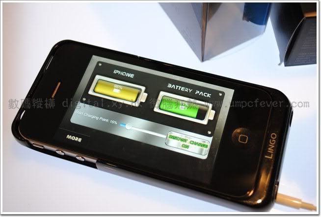 需配合專用的免費軟件「DAB GO!」iPhone APP軟件設有「Charging Wizard」iPhone電量管理功能,可因應iPhone 4內置電池剩餘電量,自動啟動預設的iRis Battery Pack充電功能,能進一步加強iPhone內置電池使用時間及彈性,非常細心實用。Lingo iRis Battery Pack for iPhone 4設有黑、白及紅3隻顏色可供選擇。