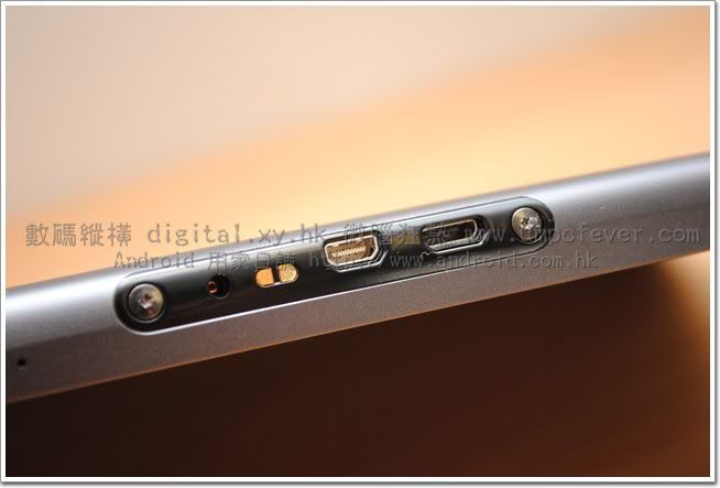 底部有micro USB 及Mini HDMI 影像輸出,Motorola Xoom有專用底座連接