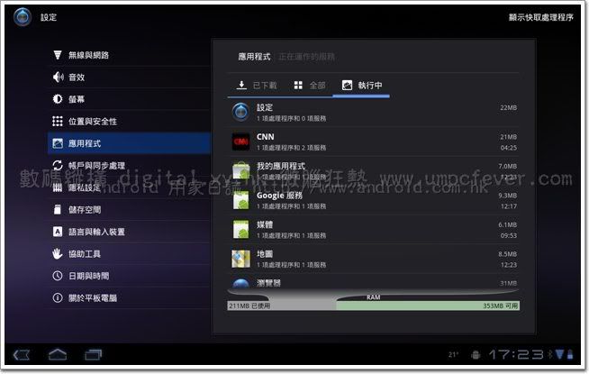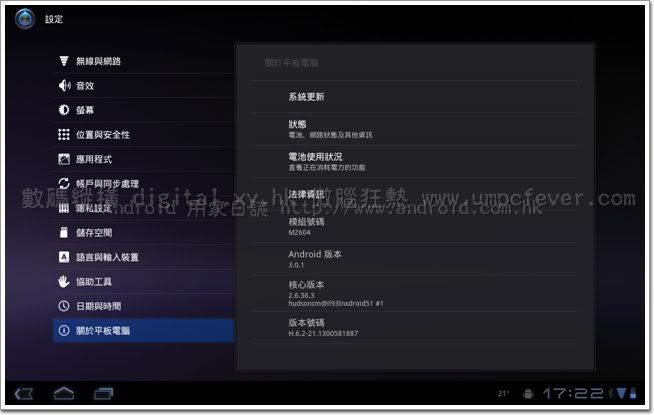 Honeycomb 介面主色採用黑色和藍色,設定介面有一點點樣iOS