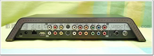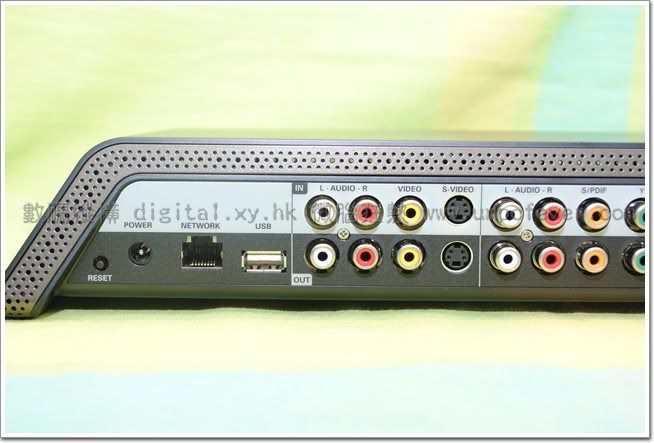 左邊有電源接口、RJ45網路線接口、USB連按口,作日後系統新功能準備用途,及一組三色影像輸入及輸出。