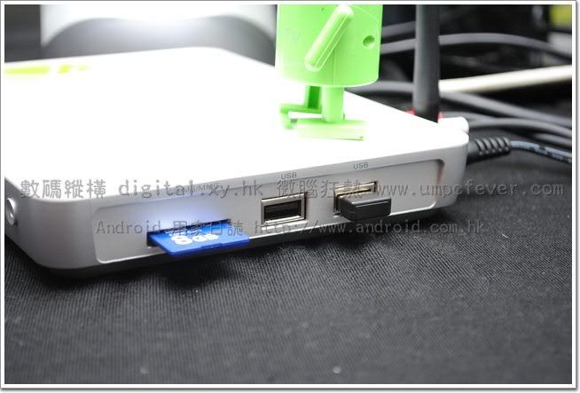 機身支援SD讀卡器及兩個USB 2.0,可接上MyGica D689 USB高清數碼手指,收看電視節目。