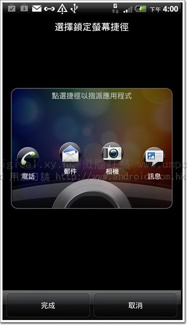 新版的鎖定介面與之前有好大分別,有四個快捷鍵可令用家快速進入程式。