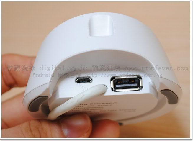Sony Ericsson再有推出手機座,LiveDock底坐有兩個接口,一邊是USB線電腦連接,還有一個可充電器電源輸入。