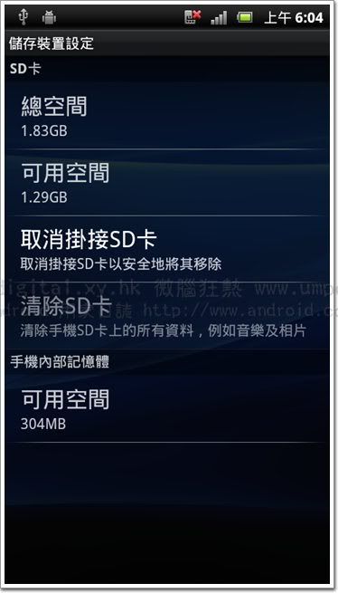 Xperia ray預載版本Android 2.3.3,手機內部儲存最多 300MB 可用