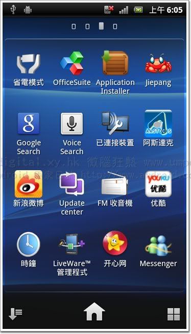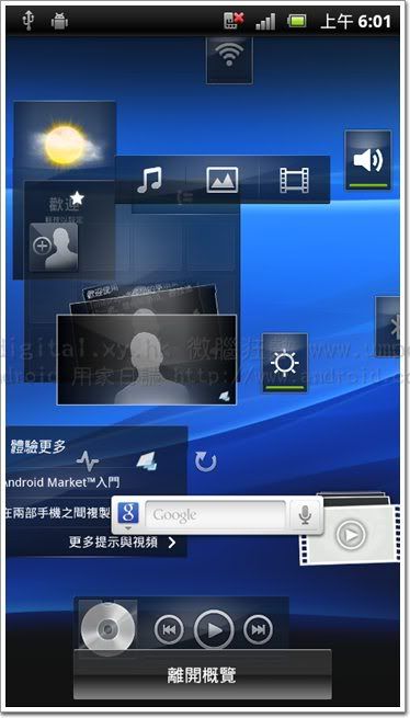 操作介面同以往Xperia 系列一樣,用上Sony Ericsson 自家介面,在Xperia Ray加入新widget(小工具)