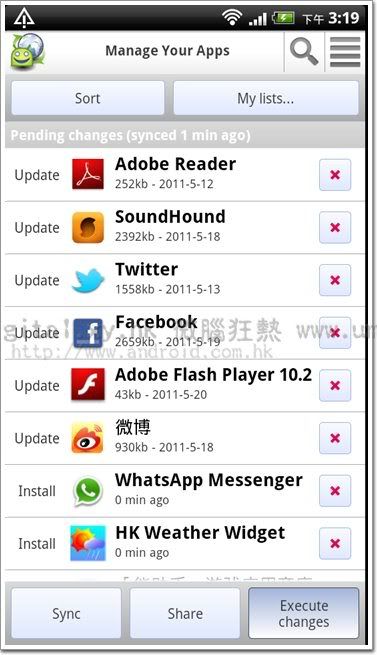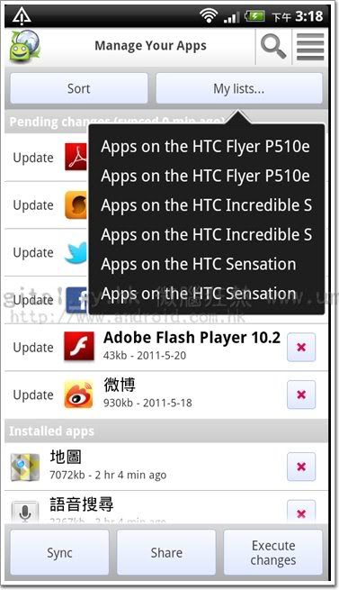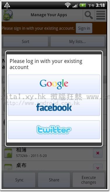 以Google 或facebook 帳號登入,完成後按「Sync」即可備份裝置上已安裝的軟件程式。