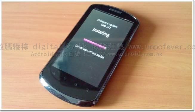 2.將IDEOS X5關機後,同時按三個按鍵(上音量鍵、下音量鍵、電源鍵) ,進行刷機過程。