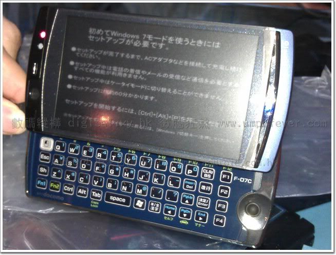 因為時間的問題,這次的開箱筆者在路上拍攝的,這次的主角就是「Fujitsu F-07C」,內置Windows 7 Home Premium 亦同時內置電話手機功能,先為各位送上完美結合 - Fujitsu F-07C外型照。