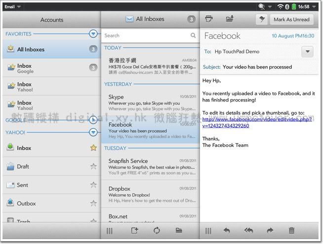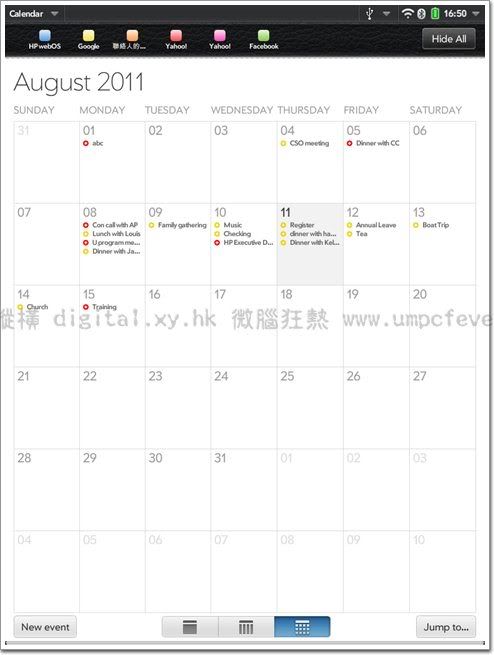 電郵及日歷處理,在webOS 以顏色分出是那個帳號,用戶一目了然。