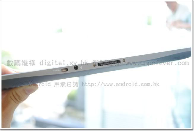 底部有HDMI 接口、3.5mm 耳機接口、專用Docking接口