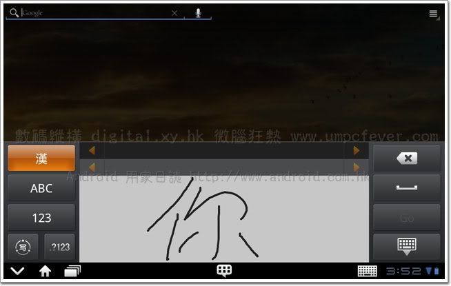 現在Androdi 3.0系統平扳電腦,當中大部份型號,未有預載中文輸入法,這一點Lenovo Tablet K1比較細心,預載了[聯想輸入法],不但倉頡輸入法更有中文手寫輸入,令香港用家無需為問題煩腦。