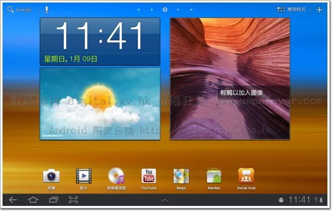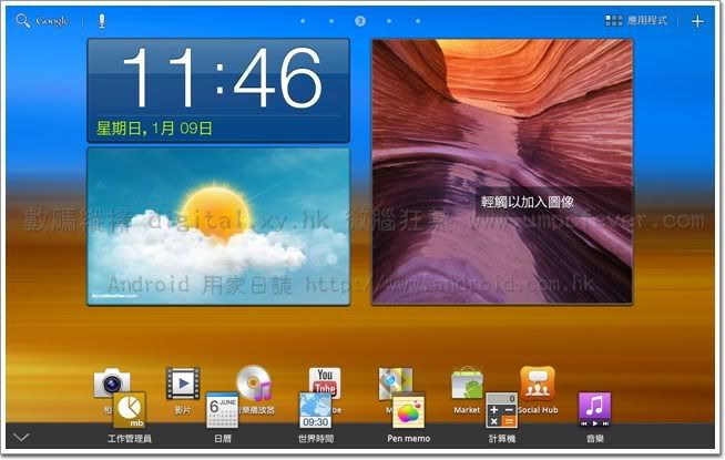 GALAXY Tab 10.1 在主畫面增加Dock 功能,可自訂放多個常用軟件程式