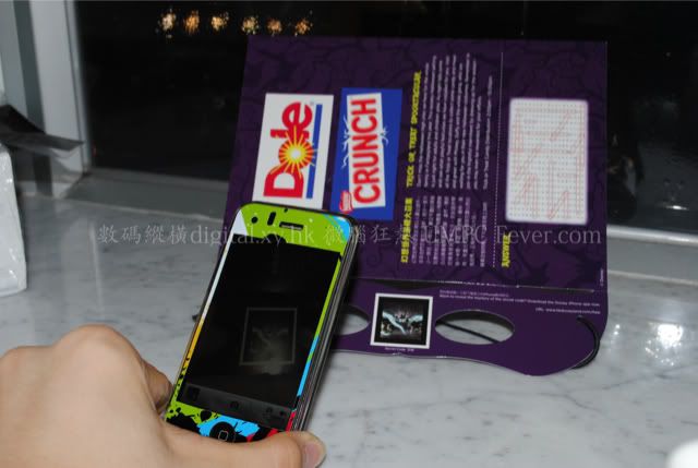 每位到埸人士會得到一個眼鏡,內有一個圖案,只要用iPhone Apps 拍攝圖案就會有鬼怪彈出來。