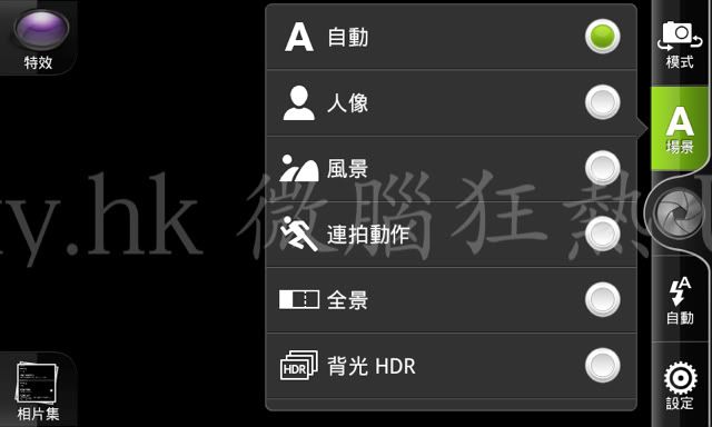 Sensation XL 相機功能方便加入新持效,更有多個不同場景