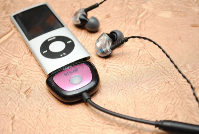 SRS iWOW 3D 音頻配件,一頭配有耳機插口,另外一頭則可連接 iPod、iPhone 或 iPad 的標準 30 pin 接口。