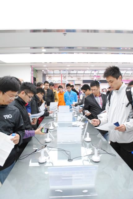 在輪侯購買的排隊人士,在試用 魅族 MX 手機。