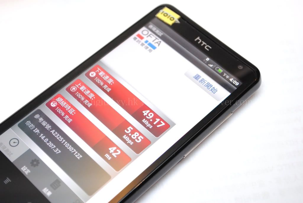LTE (4G)下載速度最高可達到 100Mbps ,筆者三次 OFTA 網站測試得出約 50 Mbps 下載速度,而 HTC Velocity 4G 在 3G 接收有作硬件升級,支援HSPA + (3G) 下載速度最高 28.8Mbps,即使無法接收 LTE (3G) ,速度可保持一定水平。