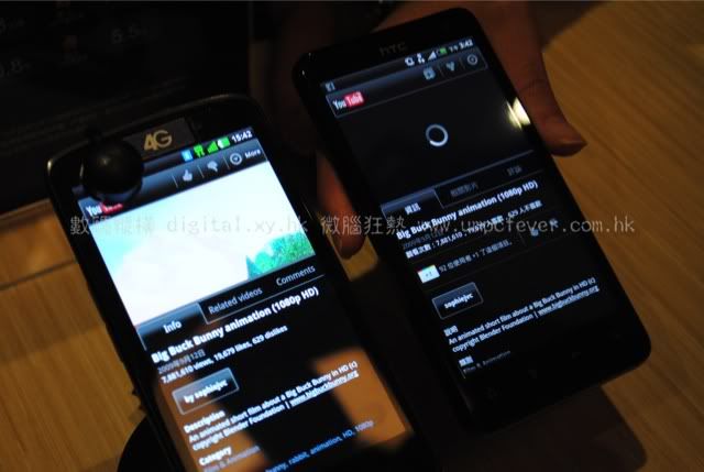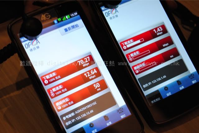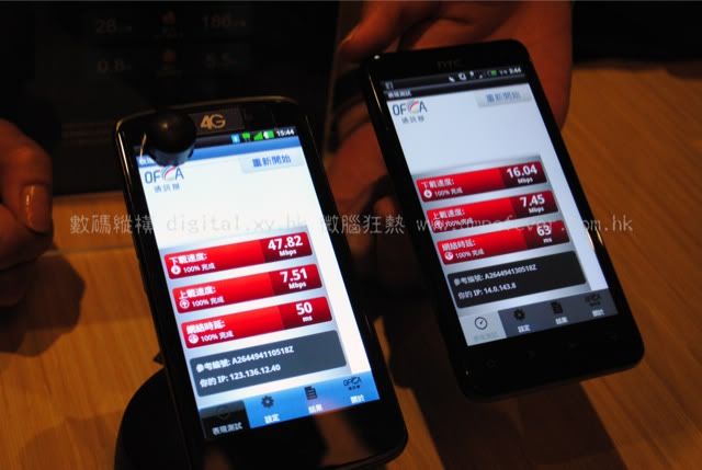 中國移動香港 4G LTE(左) 與 CSL 1010 LTE 4G (右) 測試手機 HTC Velocity 4G