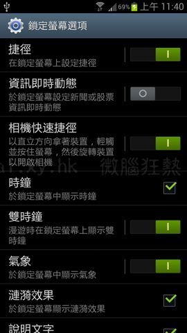 [鎖定螢幕選項] 內多種選項修改解鎖介面,可以加入Yahoo! 新聞提供的[資訊即時動態]及氣象。