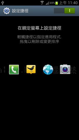 Touchwiz UX 解鎖介面下方設計四個快速捷徑,可以直接進入 Apps。