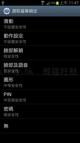 解鎖方式 Galaxy S3 亦相比 Galaxy Nexus 原生 Android 4.0.4 多為,除了[臉部解鎖]之外,為確保機主身分, 可同時以[臉部及語音]方式解鎖。